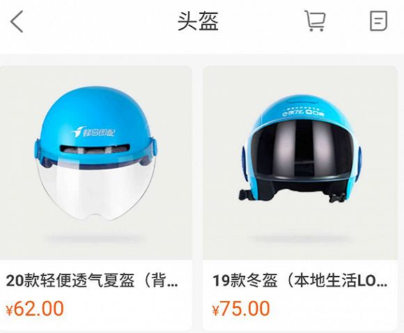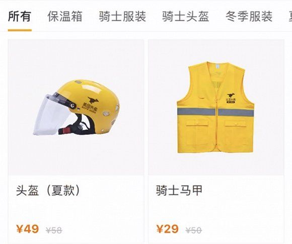 与此同时,骑手有自身稳定的头盔购置渠道:不少外卖、即时配送平台均在商城中售卖带有企业logo的定制头盔,售价不一。