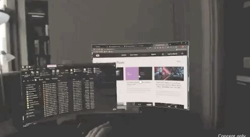 键盘,菜单栏,浮动虚拟显示屏幕都是混合现实创造的虚拟事物