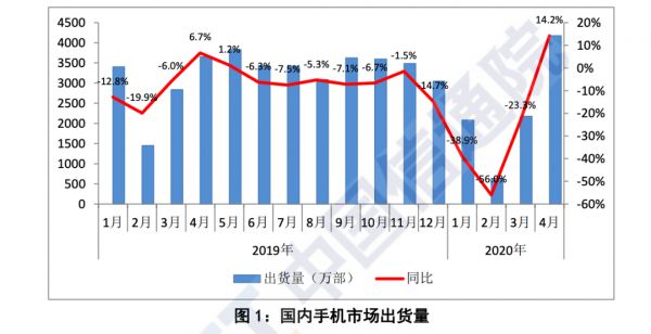 根据信通院提供的数据,4月份国内手机市场总体出货量4172.8万部,同比增长 14.2%。进入4月份后,国内手机行业终于摆脱了一季度三个月的销量暴跌。