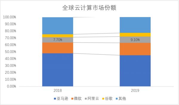 阿里云占中国市场份额超过46%。市场调研公司Gartner于4月发布了2019年云计算市场数据,阿里云蝉联亚太第一,份额从2018年的26%上涨至28%。在全球市场占有率上,阿里云也略有增长。