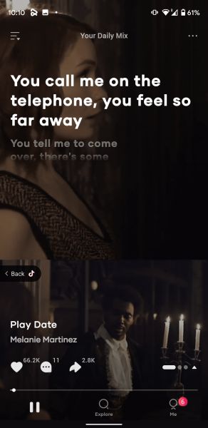 现在TikTok视频底部的配乐链接,开始包括Resso的快捷方式——如果用户点击它,页面将跳转到Resso,用户可以在其中收听完整的歌曲;此外,Resso中也有后退按钮,用户可以直接回到TikTok并继续观看视频。