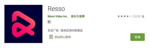 Google Play的Resso下载页面上,开发者为“Moon Video”