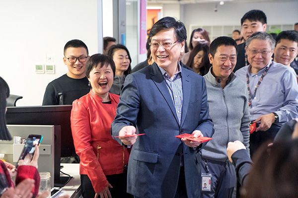 2月11日和12日,联想集团董事长杨元庆在北京总部大楼、三标大楼给员工拜年,走访了所有业务和职能部门,红包见者有份,每人一个100元红包。杨元庆还前往中关村的联想直营服务中心为一线销售员工拜年。