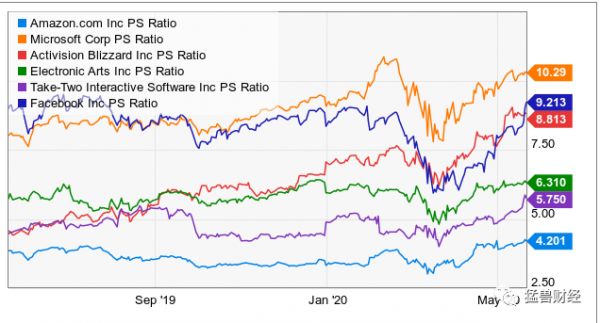 现在,让我们来讨论一下游戏公司的估值。目前在游戏领域与亚马逊最接近的竞争对手将是微软(MSFT),因为两家公司都运营游戏媒体网站,微软也发布一些Xbox独家游戏。其他主要游戏公司将是动视暴雪、艺电(EA)和Take-Two (TTWO)。Facebook (FB)也值得一提,因为他们是虚拟现实领域的大玩家。