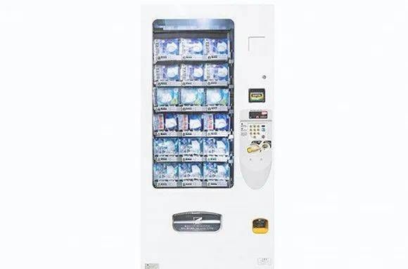 富士电机对销售点心的现有机型进行了抗菌加工改良,开发出了可销售口罩等卫生用品的专用自动售货机。来源:日本经济新闻