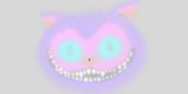 比如说,柴郡猫的笑脸就是一张特克斯勒消逝效应的图——点开图片,盯住中间的小叉叉尽可能保持视线不动,耐心等待一会儿,就会看到猫脸逐渐消失,剩下一张露齿笑的大嘴,最后连笑容也逐渐消失。