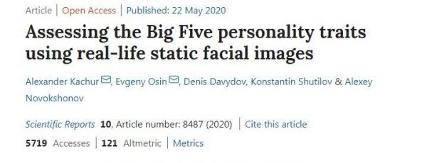 5月22日,Nature发表了一篇论文,由莫斯科大学(Moscow universities),HSE大学(高等经济学院,Higher School of Economics)和开放大学人文与经济学院(Open University for the Humanities and Economics)组成的研究团队征集了12000名志愿者,利用31000张自拍,学习了128种人脸特征,在与志愿者自己填写的信息相比之后,研究者们发现,AI识别的准确率达到了58%,并且AI的表现比算命先生更稳定。