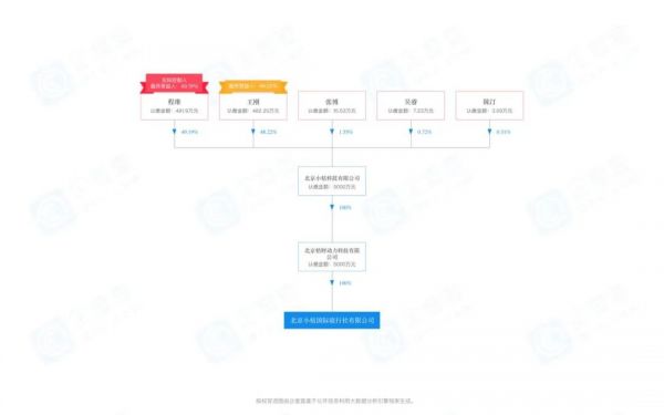 企查查显示,5月20日北京小桔国际旅行社有限公司注册成立,注册资本5000万元,法定代表人为蔡晓鸥。北京小桔科技有限公司旗下全资子公司北京桔财动力科技有限公司,为该公司大股东。程维为实际控制人,总股权比例为49.19%。