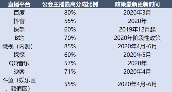 百度App目前正在通过创作者补贴和公会招募的方式寻找更多主播。平台补贴方面,百度宣布拿百亿流量和5亿元扶持主播。公会招募方面,百度直播给到公会的分成比例最高可达80%。这一比例高于抖音、快手、B站等多数平台。