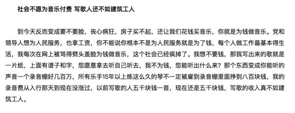 高晓松终归还是个理性主义者,也曾多次为音乐人发声,但每一次提到付费就会被“被骂得劈头盖脸为钱做音乐”。但是七年过去,如果大家的听歌观念还停留在“听歌竟然还要花钱”的阶段,那中国的音乐付费要做起来是真的难,中国的音乐人也是实惨,几百万设备做出来的歌,最后一分钱都收不回来。