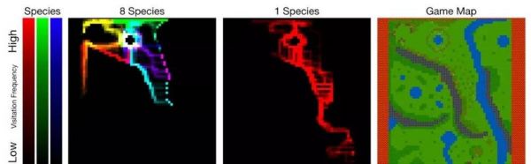 这张图对于人工智能专家和普通人来说都没什么特殊意义,但是生物学家,尤其是研究生物行为的学者会发现,AI们的行为非常接近自然界中不同动物种群的活动。