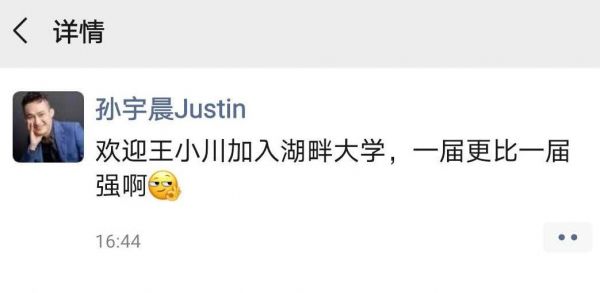 5月26日,孙宇晨发朋友圈说“欢迎王小川加入湖畔大学”。孙宇晨是马云湖畔大学的首期学员,曾主动发文说王小川认为他是骗子。