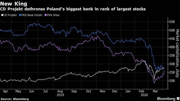 CD Projekt在2015年推出《巫师3》后一炮而红,其股价一路飙升。据彭博社报道,CD Projekt市值于今年四月超过波兰最大银行PKO。时隔一个月,该公司超越Ubisoft被封为欧洲市值最高游戏厂商。