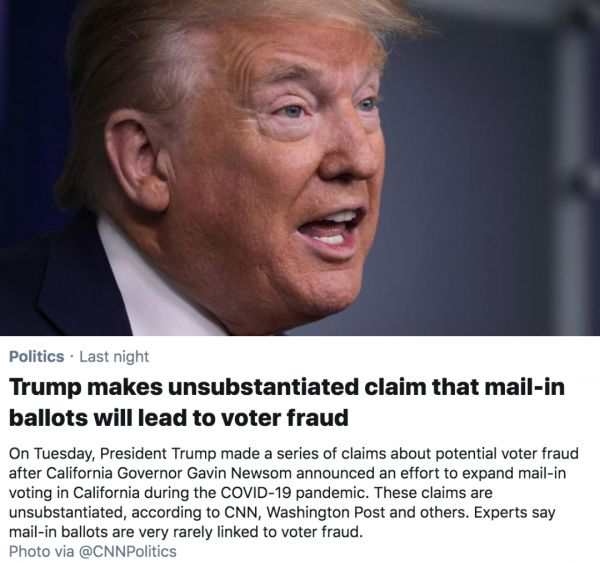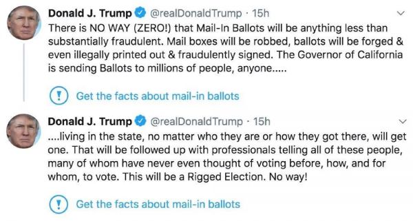那么,特朗普发送邮寄选票会欺诈选民等类似推文的原因是什么?