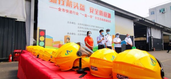 据北京晚报消息,在5月28日上午举行了“骑行戴头盔、安全防意外”暨本市快递行业“一盔一带”示范活动启动仪式。