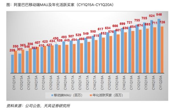 如果从早年的数据来看,在阿里刚上市的2015-2016年,尽管淘宝已经发展了十多年,季度MAU确实是是低于年化活跃买家的。阿里收购优酷等平台的操作,是发生在2017年及之后了。