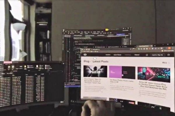 Facebook Oculus VR实现的悬浮屏,图片来自Twitter