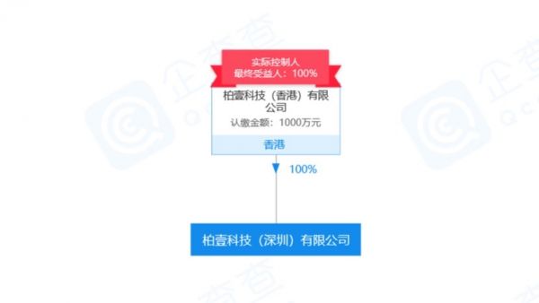 据工商信息显示,「柏壹科技(深圳)有限公司」未开展融资, 柏壹科技(香港)有限公司占全部股份。