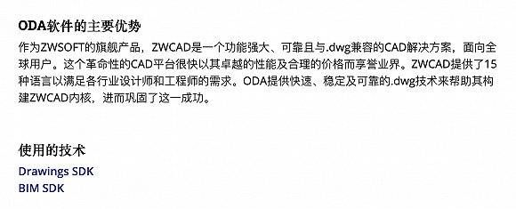 界面新闻查阅ODA官网,中望CAD作为会员代表出现,并提到,ODA提供快速、稳定及可靠的.dwg技术来帮助其构建ZWCAD内核。