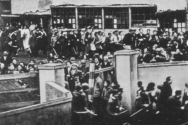 事件的起因是,之前警察阻止了7名朝鲜人持枪抢劫,结果就引来了朝鲜人的报复。