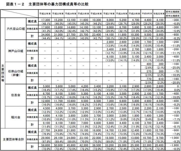 日本目前几大暴力团人员构成