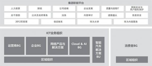 整体来看,除了职能部门,华为业务主要分为ICT业务和消费者业务,其中,ICT业务涵盖了运营商BG、企业BG和Cloud & AI BG,分别对应运营商客户、政企客户和云与计算产业,这几大业务也支撑起了华为的庞大营收。
