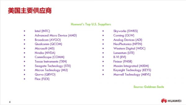 另外,华为官网还曾披露了美国的主要供应链厂商。