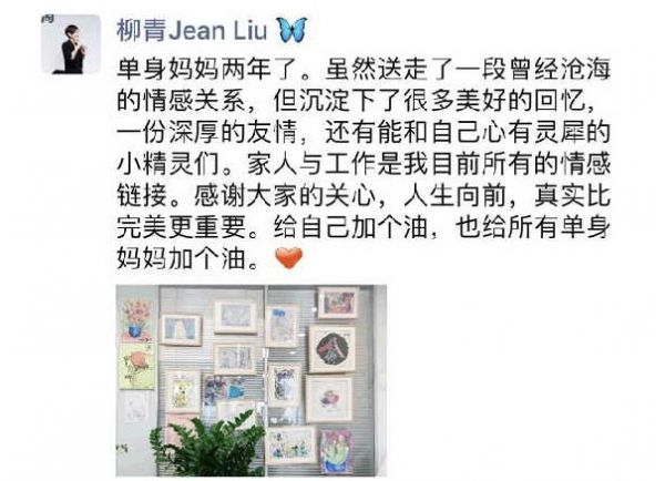 2019年4月16日,柳青在朋友圈公开承认自己已离婚两年。并直言,家人和工作是她目前所有的情感链接。