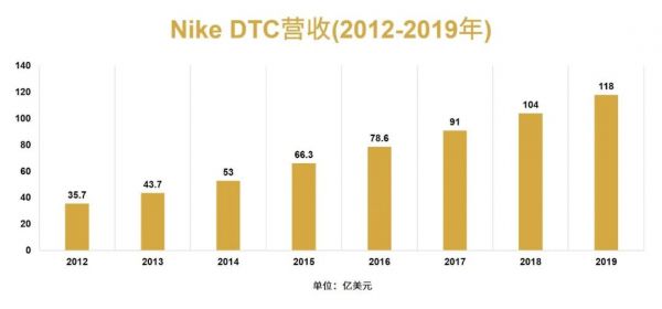 2019年底Nike宣布将停止在亚马逊电商平台上直接销售产品,转向聚焦自有官网和App以及线下门店,数据来源:Nike财报