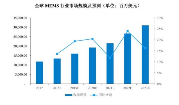 据赛迪顾问,到 2021 年,全球 MEMS 市场规模将超过 200 亿美元,中国也市场逼近 900 亿元。
