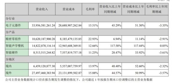 2015 年,歌尔股份打入了苹果产业链,营收暴涨,盛极一时,拿到了全球 MEMS 二把手的交易,市占比 18%,仅次于美国巨头楼氏。