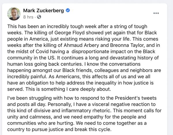 FB员工虚拟罢工 谴责小扎没删特朗普涉煽动暴力言论