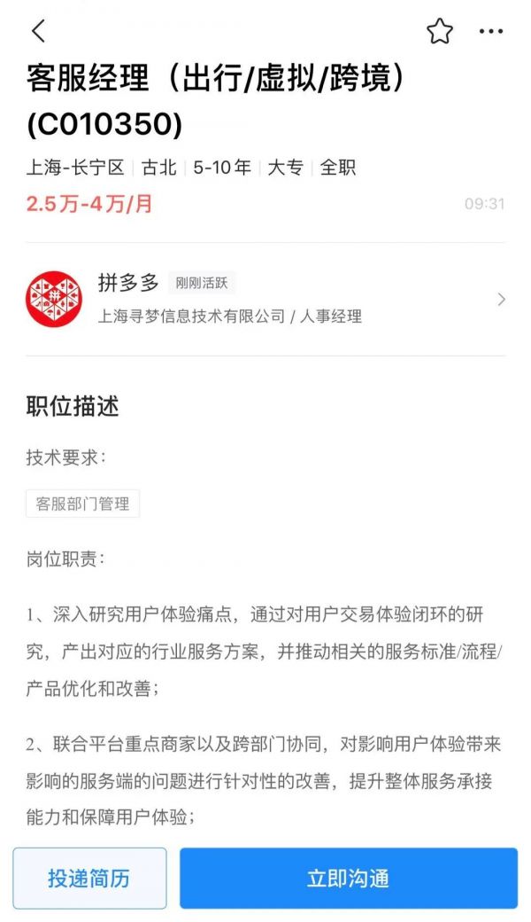 最后,跨界者布局新领域往往需要构筑核心优势。如去哪儿网凭借垂直搜索比价的平台优势占据市场一席之地;而携程储备了不少专家型的机票业务人才,其国际机票业务则是靠技术取胜。对于新入局的拼多多来说,仅仅接入了一家51BOOK,想要破局仍存挑战,不过拼多多也在不断摸索和打磨新产品,环球旅讯注意到,拼多多近日在招聘与出行相关的岗位,似乎想借此优化火车票和机票业务的产品。