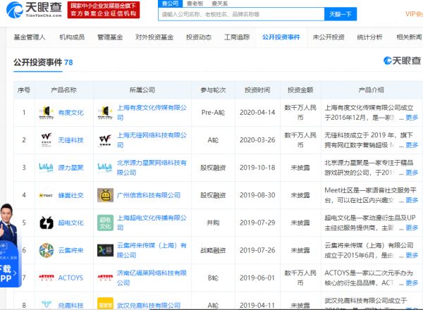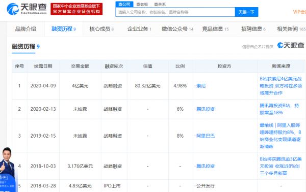 在天眼查中可以明确看到,最近B站融资项目并不多,只有索尼与腾讯的加持,但是同期的投资项目却遍地开花,而且多数还是未披露的数额,可以见得B站如今的动态整体偏向图投资发展,想要全面开花而不再是一味的靠融资发展。