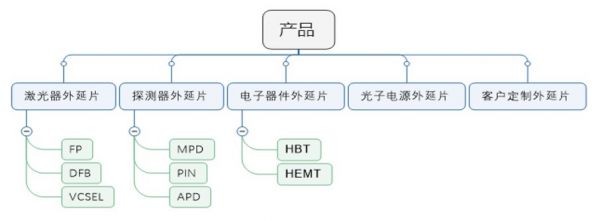 在技术方面据公司官网信息,「全磊光电」建有完整的MOCVD材料外延生产线和相配套的检测中心,能够生产多种类型的外延片产品,包括激光器外延片(FP/DFB/VCSEL)、探测器外延片(MPD/PIN/APD)、电子器件外延片(HBT/HEMT)、光子电源外延片、客户定制外延片。