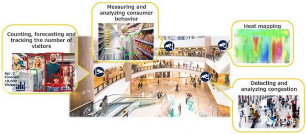 用户能够将自己选择的AI模型写入嵌入式存储器中,并可根据用户要求或系统使用位置等条件对其进行重写和更新。例如,当在零售商场安装集成智能视觉传感器的多个摄像头时,应用可以横跨不同的时间、地点(环境)或目的。当安装在商场入口时,它可以用来统计访客数量;当安装在商店货架上时,它可以用来检测库存短缺情况;当安装在商场天花板上时,它可以用于绘制商店访客热图(检测客户聚集的位置)等。同时,用户可以随时改写这些摄像头中的AI模型,比如从“用于检测热图的模型”改成“用于识别消费者行为的模型”。