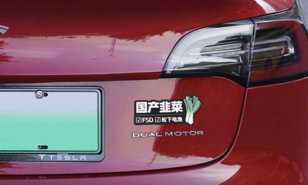 这并非段子,为了表达对国产版Model 3频繁降价的不满,部分进口Model 3车主在车尾贴上了这个标签。而随着国产版Model 3为配合补贴政策再次降价至30万区间内,淘宝上估计已经有“国产韭菜”车贴销售了。