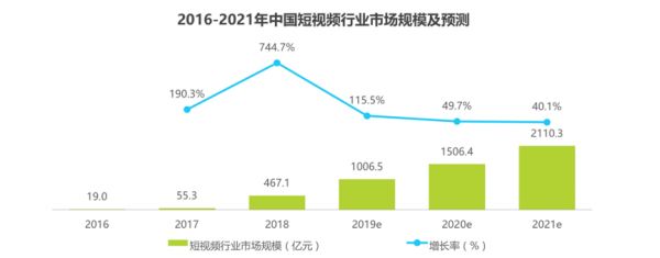 2016 - 2021 年中国短视频市场规模及预测: