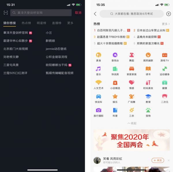 ▲抖音和快手搜索页面