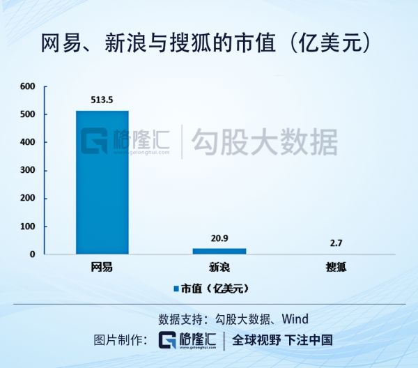 网易绝对算是先知先觉者。现在回头去看,2002年网易就开始转型做游戏,到2006年,游戏业务占其营收的比例就已经超过八成,基本已经成功转型。此时的新浪,距其下一代旗舰产品--新浪微博的上线还有三年,而搜狐也还没有孵化出畅游,更别说后来的搜狗了。时过境迁,搜狐、网易和新浪,三家公司的体量差的已不是一点半点。