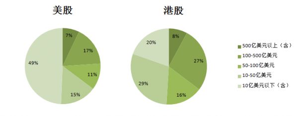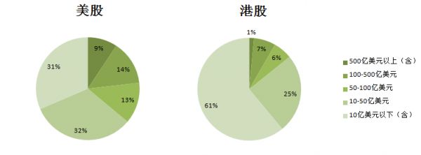 两市中概股市值分布图