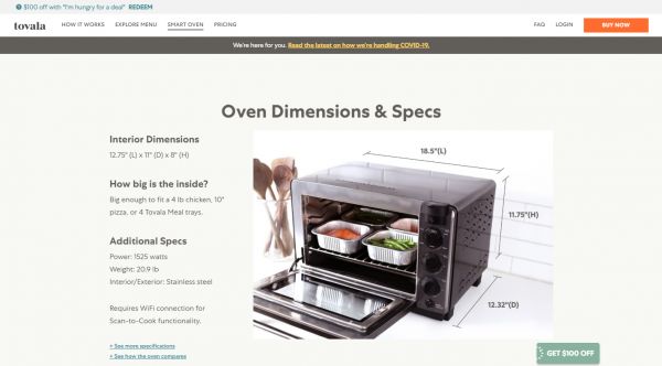Tovalva 智能烤箱售价为299美元,有100天的试用期,但只要在 Tovalva 订购6餐食物,就可以以199美元买到烤箱。Tovala 还与 LG 建立了合作关系,将其 “Scan-to-Cook ”技术嵌入到 LG 的智能烤箱中。Tovala 还与 Beyond Meat 和名人厨师 Graham Elliot 合作,提供限时的餐点,并通过 QVC 销售来扩大分销。