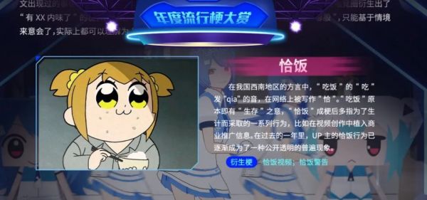 “恰饭”本义是南方方言中的“吃饭”,后来延伸为,指有影响力的自媒体、组织、创作机构、UP主等接受第三方广告,并将其向自己的读者、粉丝、订阅者、观众推广的行为。