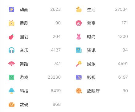 B站各分区&投稿量