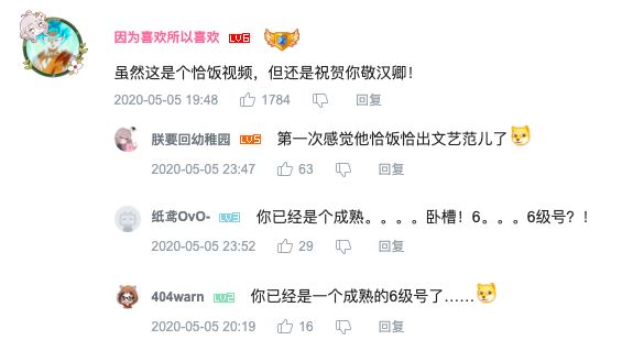 而看着他一路走来的粉丝也会真情实感地送上祝福:「虽然这是个恰饭视频,但还是祝贺你敬汉卿!」