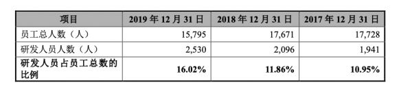 研发人员方面,截至 2019 年 12 月 31 日,中芯国际共有员工 15795 人,其中研发人员 2530 名 ,占公司人数的 16%,公司内硕士及博士人员占比为 20.52%。