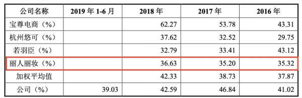 代销的主要优势则在于模式更轻,表现出轻资产、高毛利的特点。以经销业务为主的丽人丽妆,毛利率水平就低于同行。