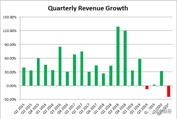 在下面的图表中,我们想展示与过去五年相比,这一时期的收入数字是怎样的。正如你所看到的,2020年第二季度将只是这个时期的第二季度,顶线会下降,最弱的四个增长周期中的三个将是过去12个月。不过,一些增长预计将很快恢复,目前的预期是,今年第三和第四季度的收入同比增幅都将超过15%,但这些数字仍将远低于长期平均水平。