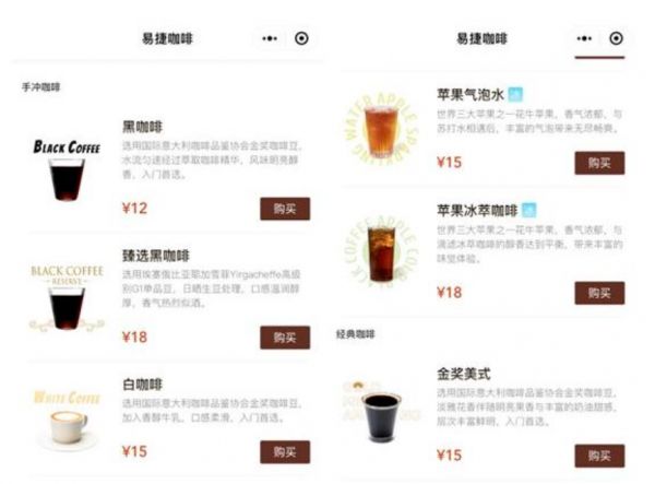 易捷咖啡小程序菜单
