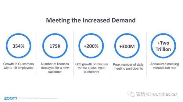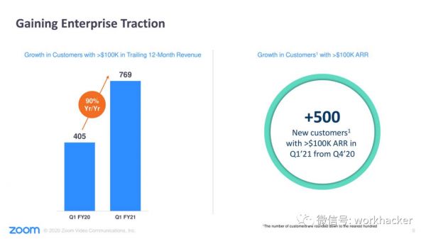 比如某新增银行客户在本季度中,仅此一家客户就部署了大约175,000个新的Zoom企业许可证。